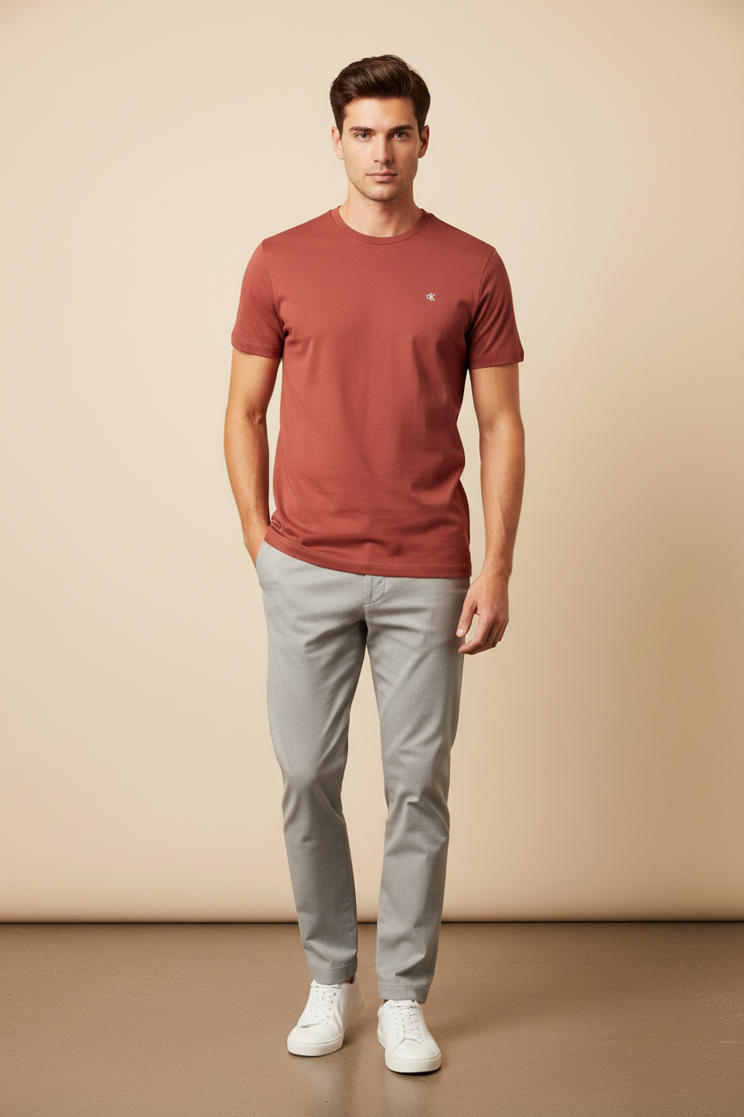 Tedd teljessé stílusod ezzel a klasszikus Calvin Klein Jeans rövid ujjú férfi pólóval, amelyet letisztult dizájn, minőségi anyaghasználat és időtálló elegancia jellemez. A póló egyedisége a finoman elhelyezett, hímzett CK logóban rejlik, mely diszkrét, mégis exkluzív megjelenést biztosít.