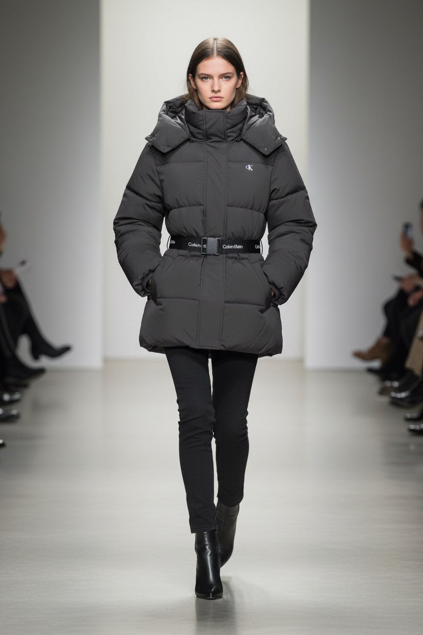 A kabát derék részén Calvin Klein logós, rugalmas öv található, amely nőies sziluettet ad és extra tartást biztosít.