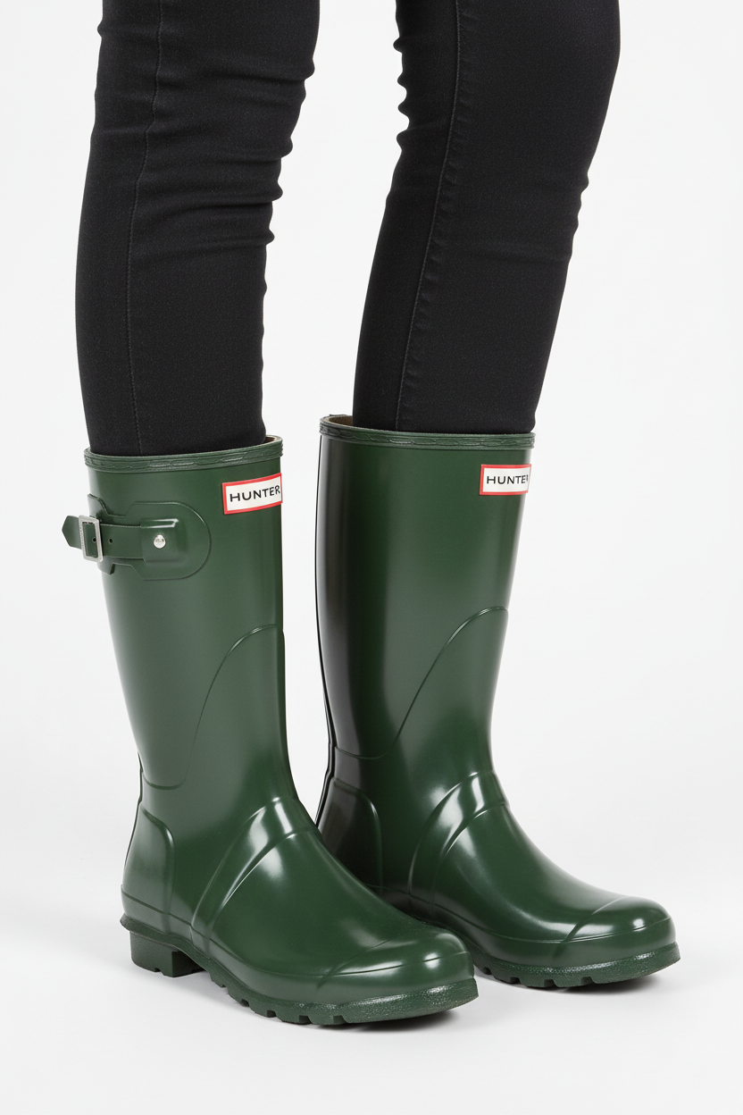 Ez a Hunter rövid Wellington csizma a tökéletes választás esős napokra, stílusos és funkcionális kialakításával. A csizma klasszikus zöld színe és fényes felülete elegáns megjelenést kölcsönöz, miközben maximális védelmet nyújt a nedves időjárás ellen.